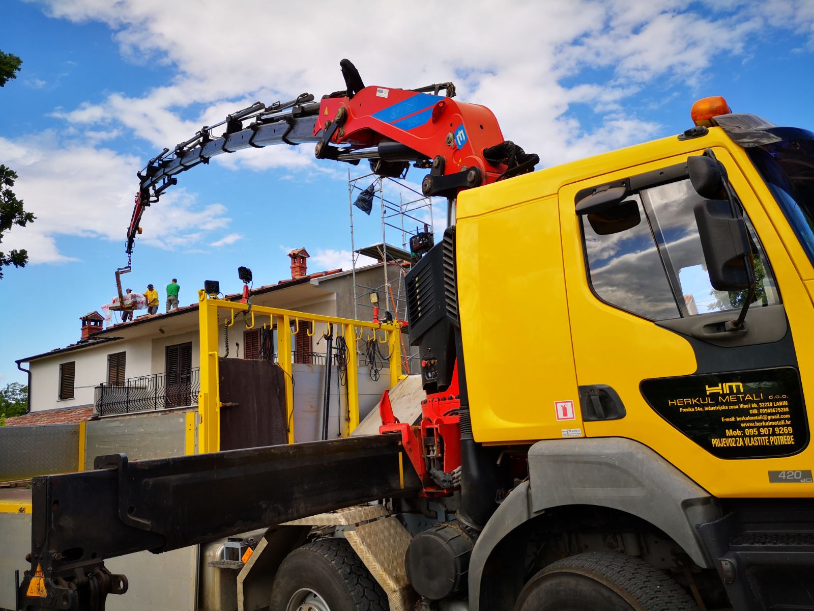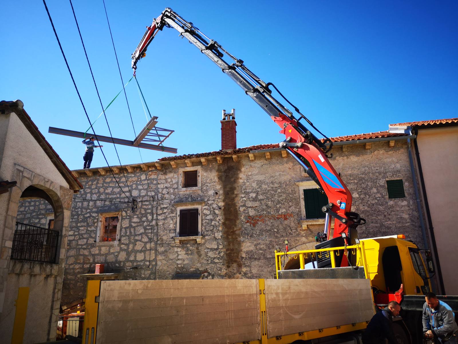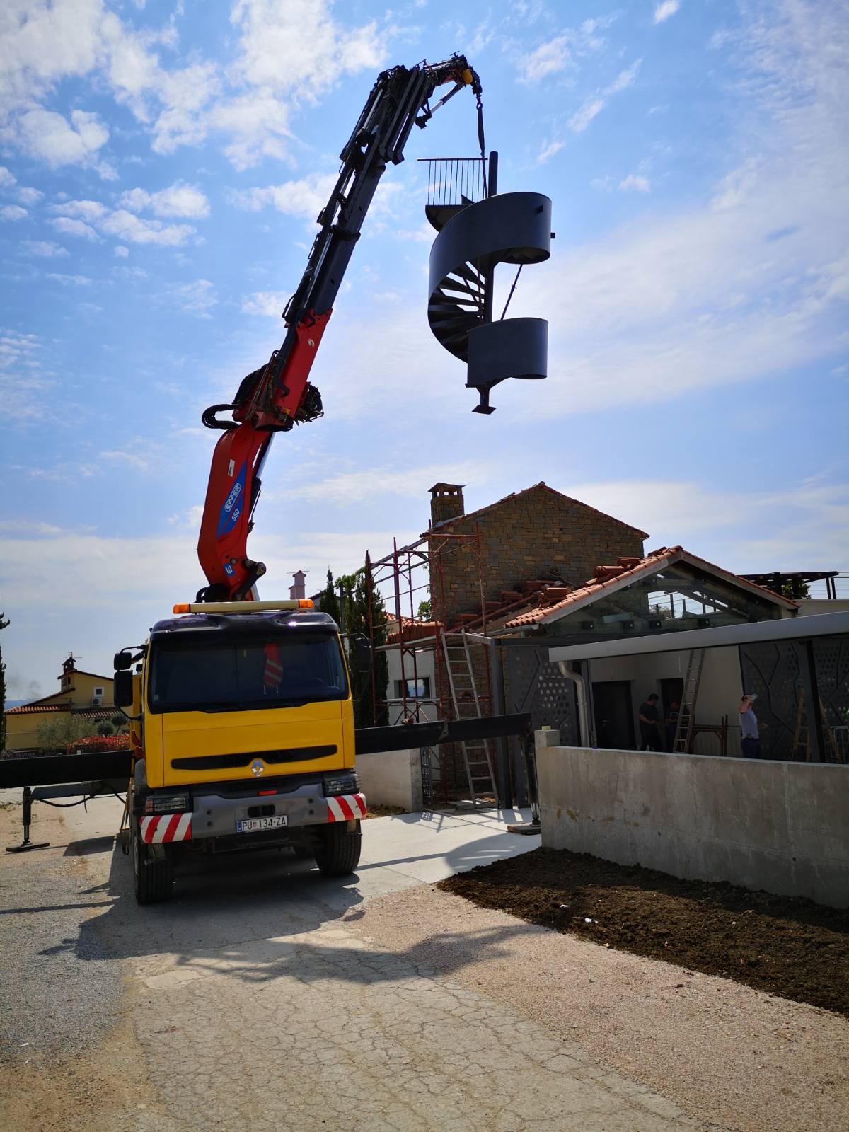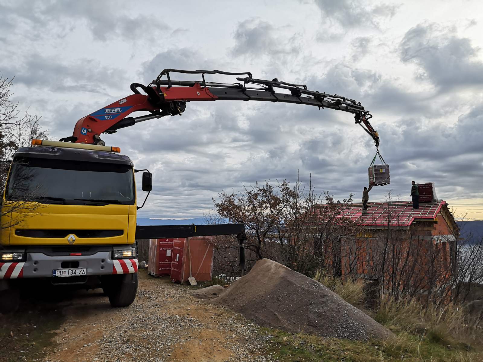 Nudimo usluge dizalice, stoga po potrebi možemo premještati teže terete, materijal i konstrukcijske elemente na teže dostupna mjesta.